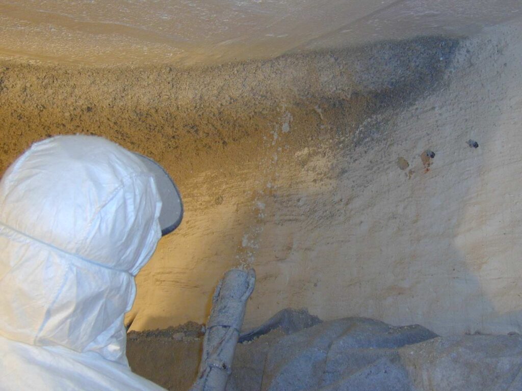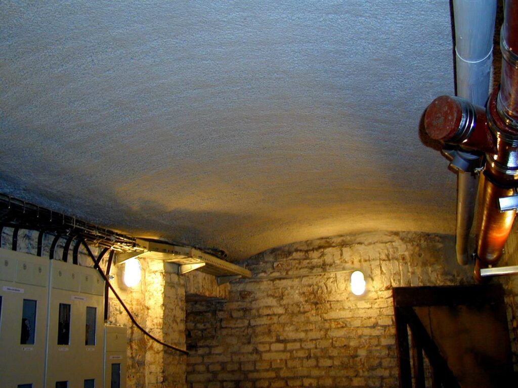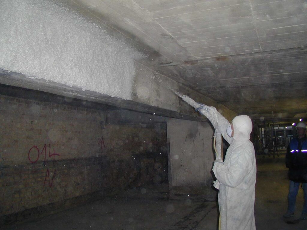 Anwendung der Spritzputze Cafco „Heat Shield“ und „Blaze Shield“ sind sehr oft Tiefgaragen und Keller (Wärmedämmung), offene Parkdecks, Geschossdecken aus unterschiedlichster Bauart (Brandschutz).